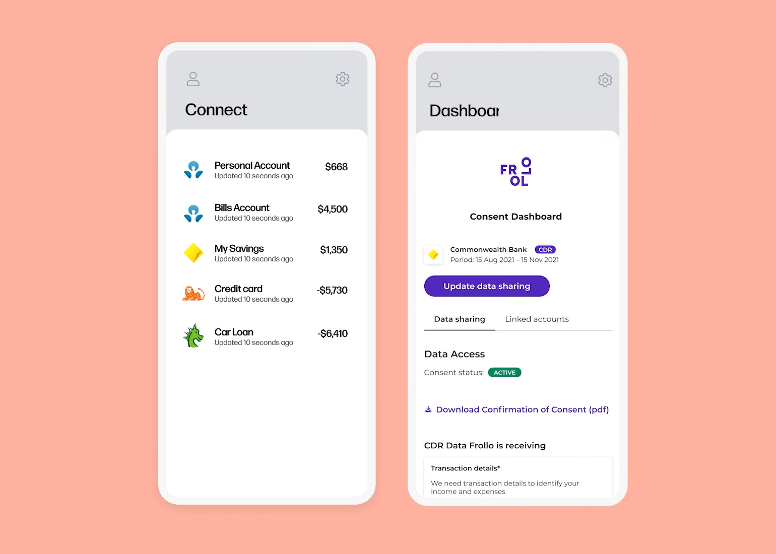 Frollo for Business is an enterprise-grade platform for Australian banks, non-bank lenders, and wealth service providers. Our Open Banking platform turns data into meaningful insights to help organisations acquire, retain, and better serve customers.